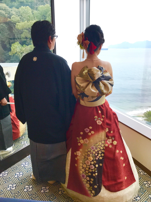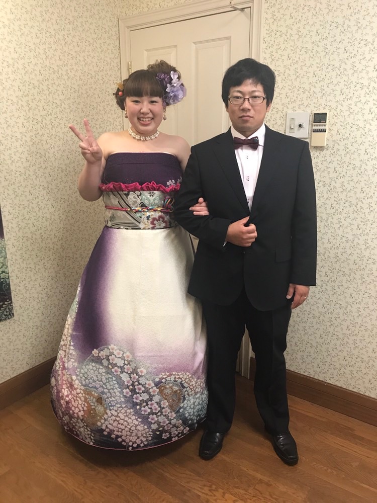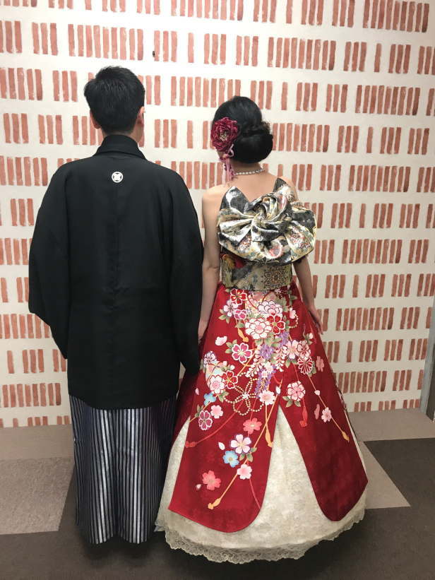 最初、妻のお母さんは振袖を着てほしいし、妻はドレスを着たいしで悩んでいました。僕が中尾さんのフェイスブックで以前にオリエンタル和装を見た記憶があり、妻に見せたところ「それいいかも!」ということで話が進んでいきました。